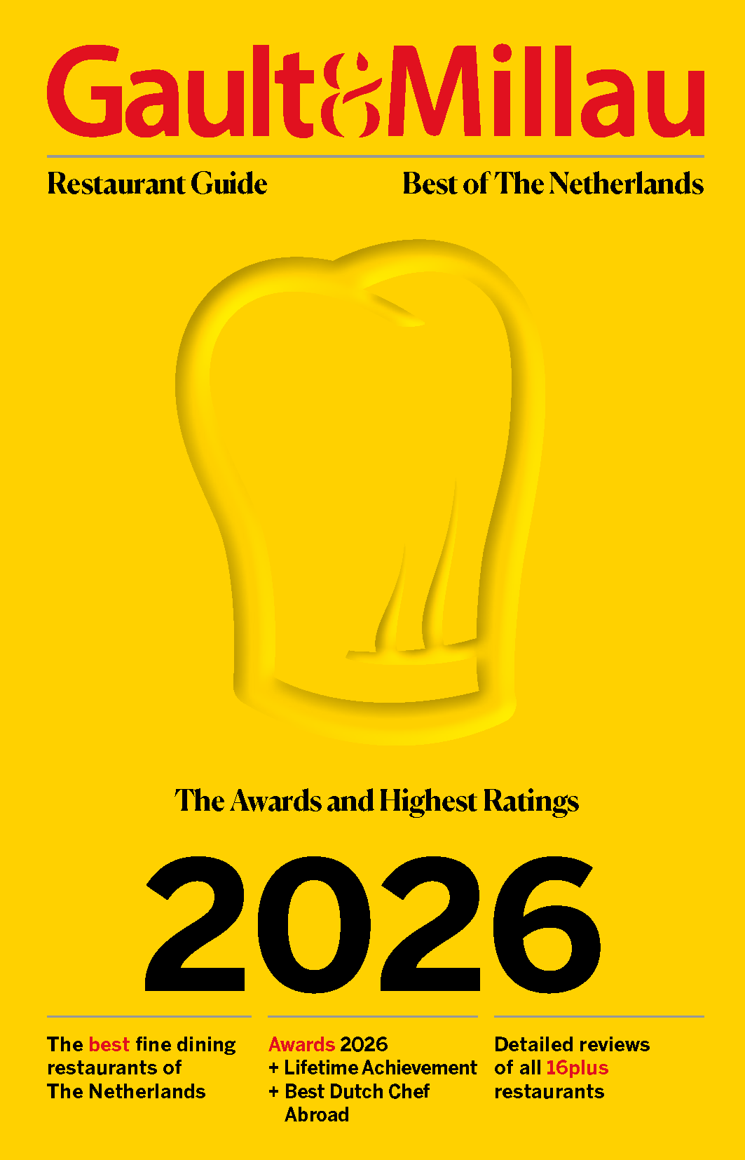De Gault&Millau 2026 restaurantgids “Best of The Netherlands” telt 124 pagina’s en bevat volledig nieuwe teksten van de 16+ restaurants. In de gids ontdekt u tevens de Award Winnaars van de laatste editie. Deze gids wordt uitgegeven op 9 februari 2026.